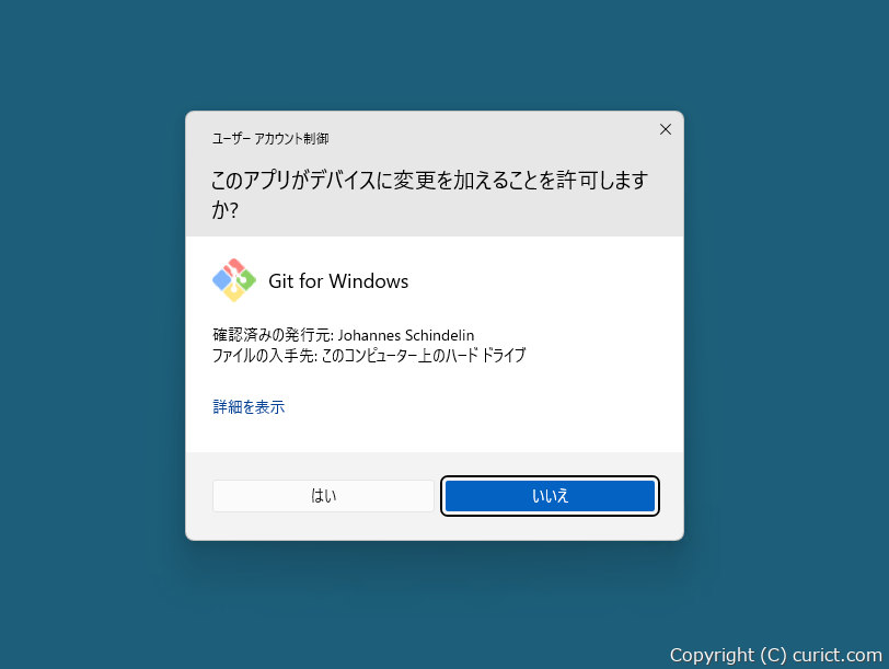 Gitをアンインストール後、最新のインストーラーを実行します。検証環境