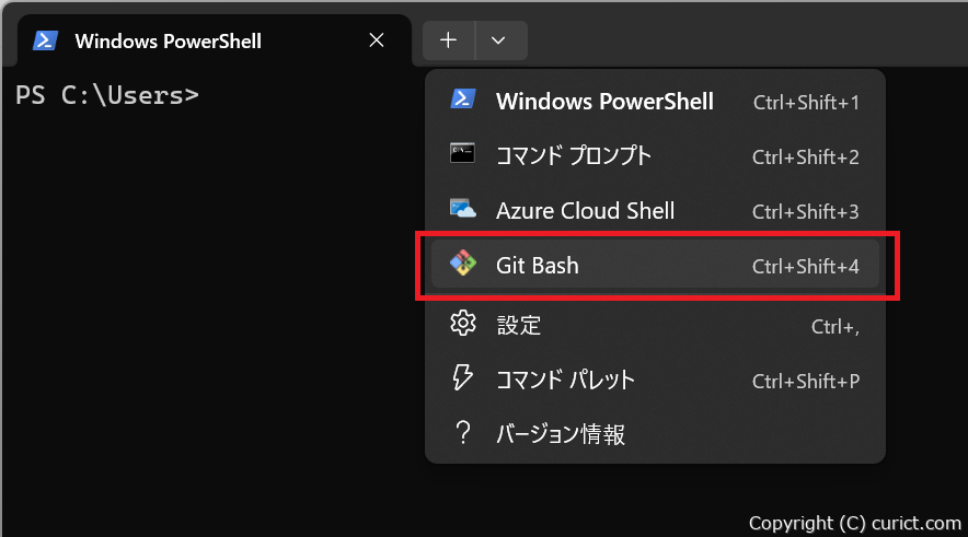 Git Bash が起動します。(Git Bashをインストールした場合) -