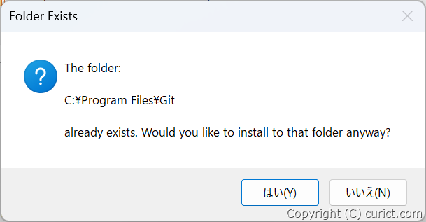 (インストール先に指定したフォルダが存在する場合は確認画面が表示されるので、はい を選択します。)