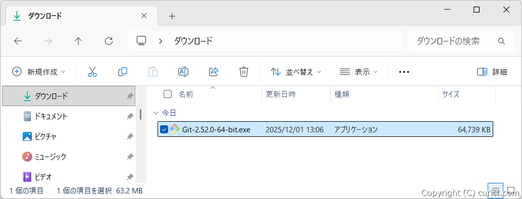 Git(Git for Windows Version 2.52)をWindowsにインストールする手順です。