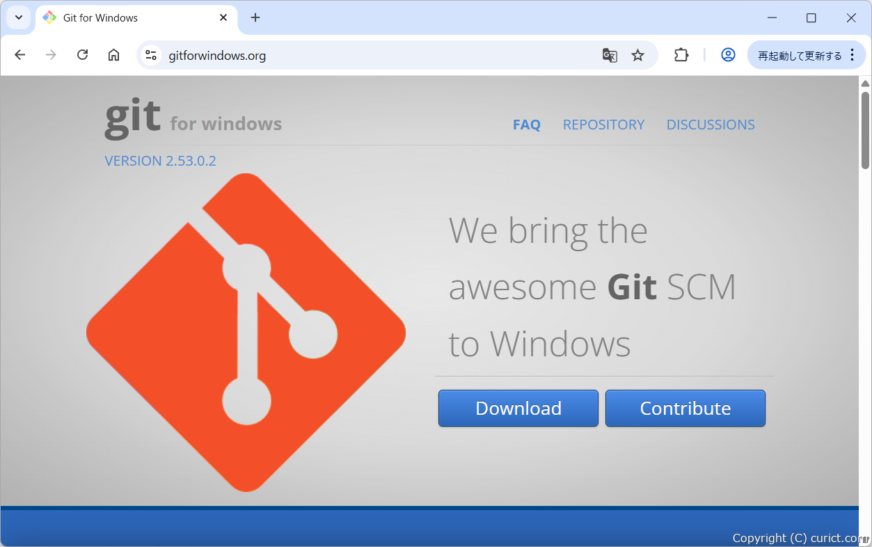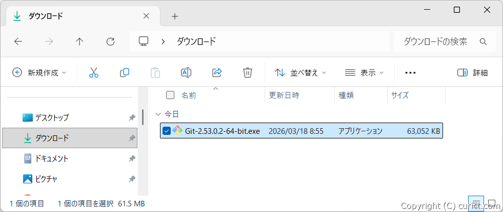 Git(Git for Windows Version 2.53.0.2)をWindowsにインストールする手順です。